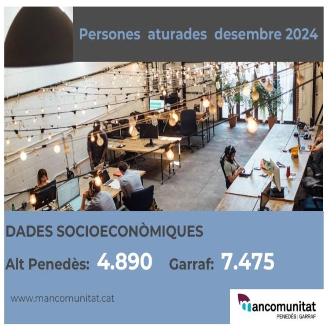 | L’atur a l’Alt Penedès i al Garraf amb xifres similars a l’any 2008 El Servei d’Iniciatives Econòmiques (SIE) ha publicat l’informe amb les dades del mercat de treball a l’Alt Penedès i el Garraf corresponent al mes de desembre. L'atur augmenta a l'Alt Penedès però tanca 2024 amb bones xifres. El Garraf presenta el nivell d’aturats més baix dels darrers 16 anys. Totes dues comarques milloren els registres en la comparació interanual.